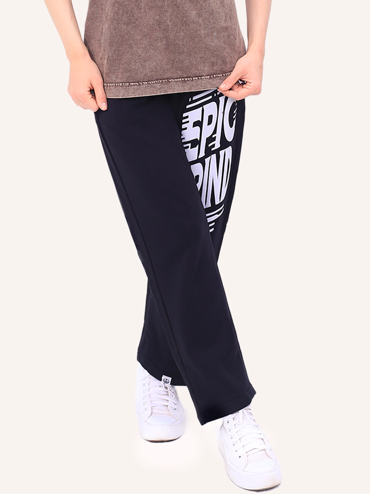 بنطال رياضي واسع الساق بلون كافيه