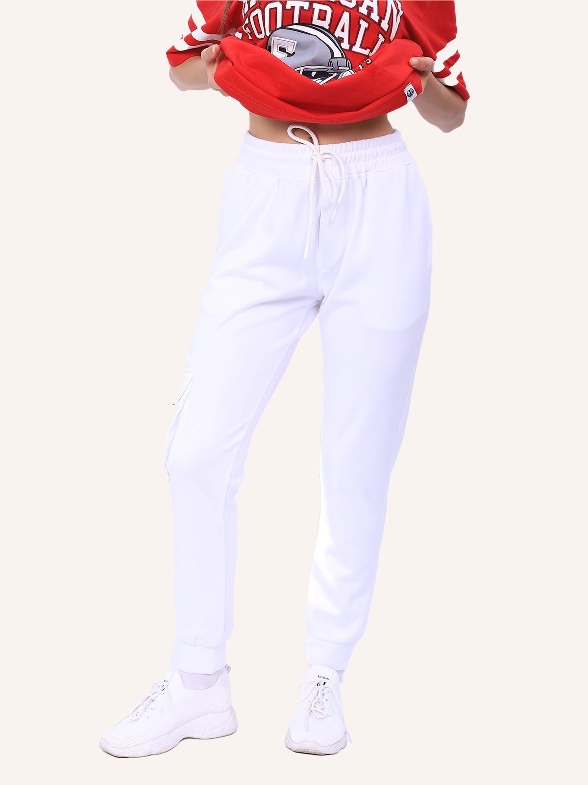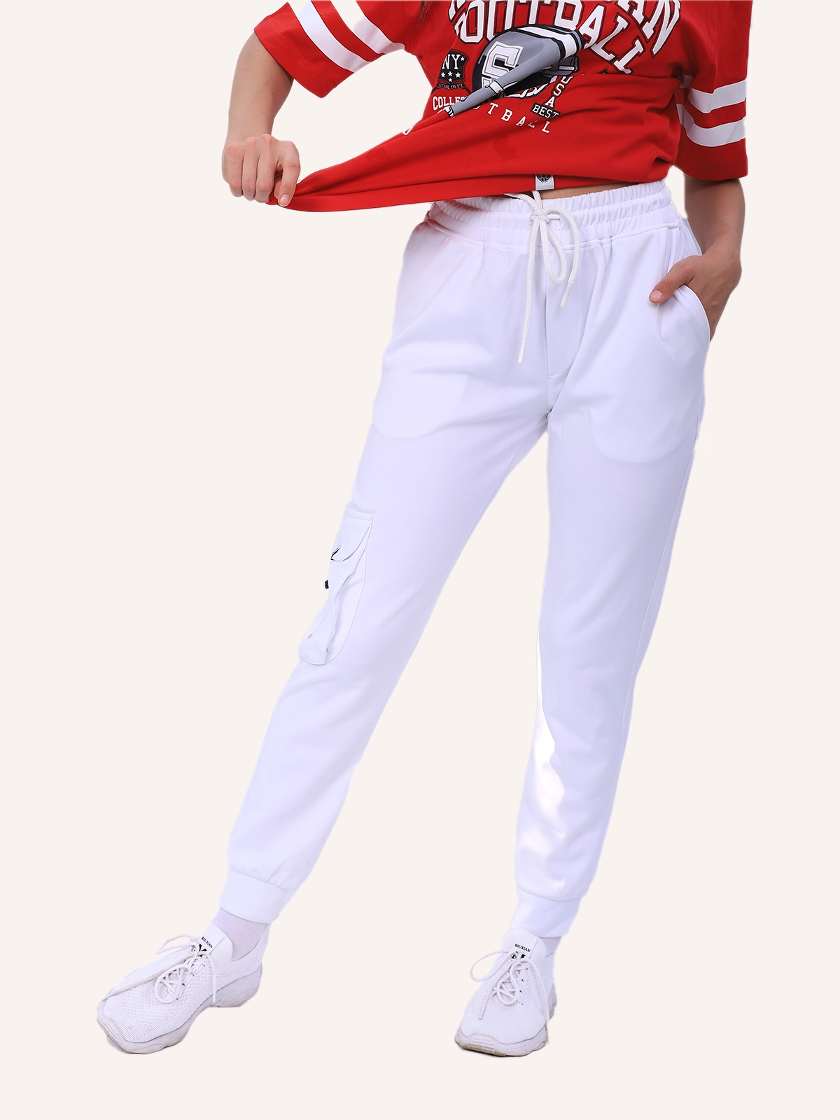 ارتقِ بخزانة ملابسك مع بنطال الكارغو الجوغر الأبيض، المصمم للراحة والأناقة على حد سواء. صُنع هذا البنطال من مزيج من 92% بوليستر و 8% سباندكس، وهو مثالي للنزهات الكاجوال أو الأيام النشطة، حيث يوفر المرونة والمتانة التي تحتاجها.