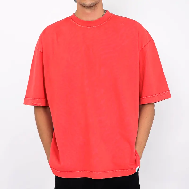 تي شيرت أوفر سايز من الجيرسيه الثقيل باللون الأحمر