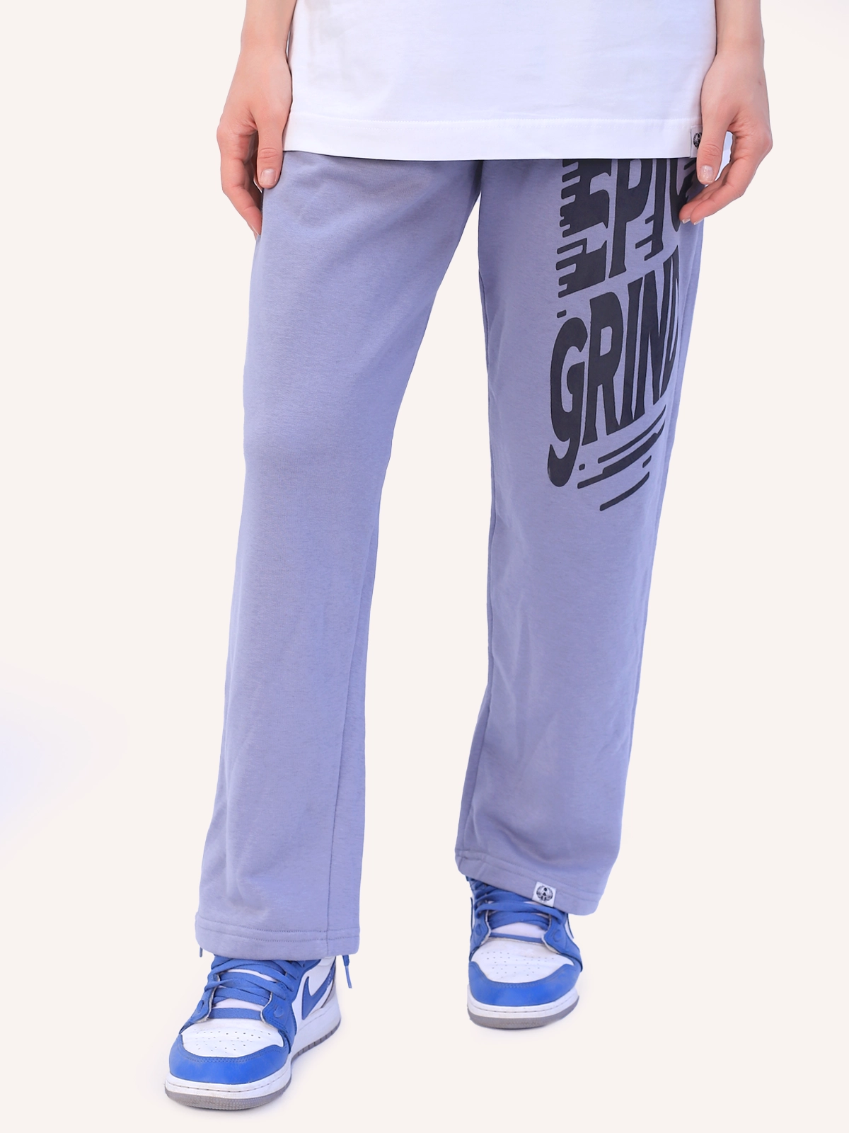 بنطال رياضي واسع الساق رمادي فاتح
